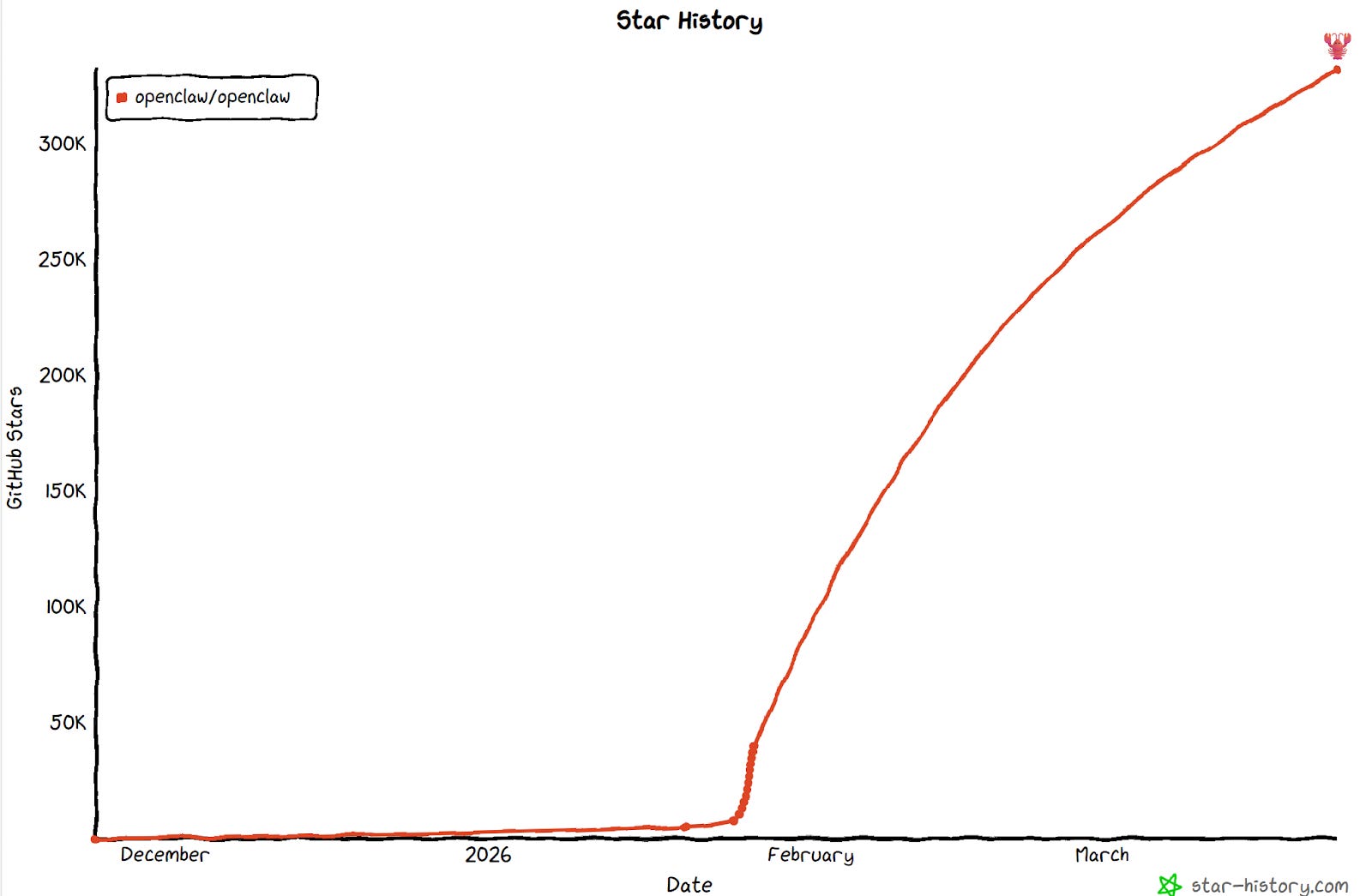 In January, OpenClaw – an open-sourced, self-hosted agentic library – became the poster child for agentic technology. As shown by GitHub’s “Star History”, the adoption has been astronomical in just two months.