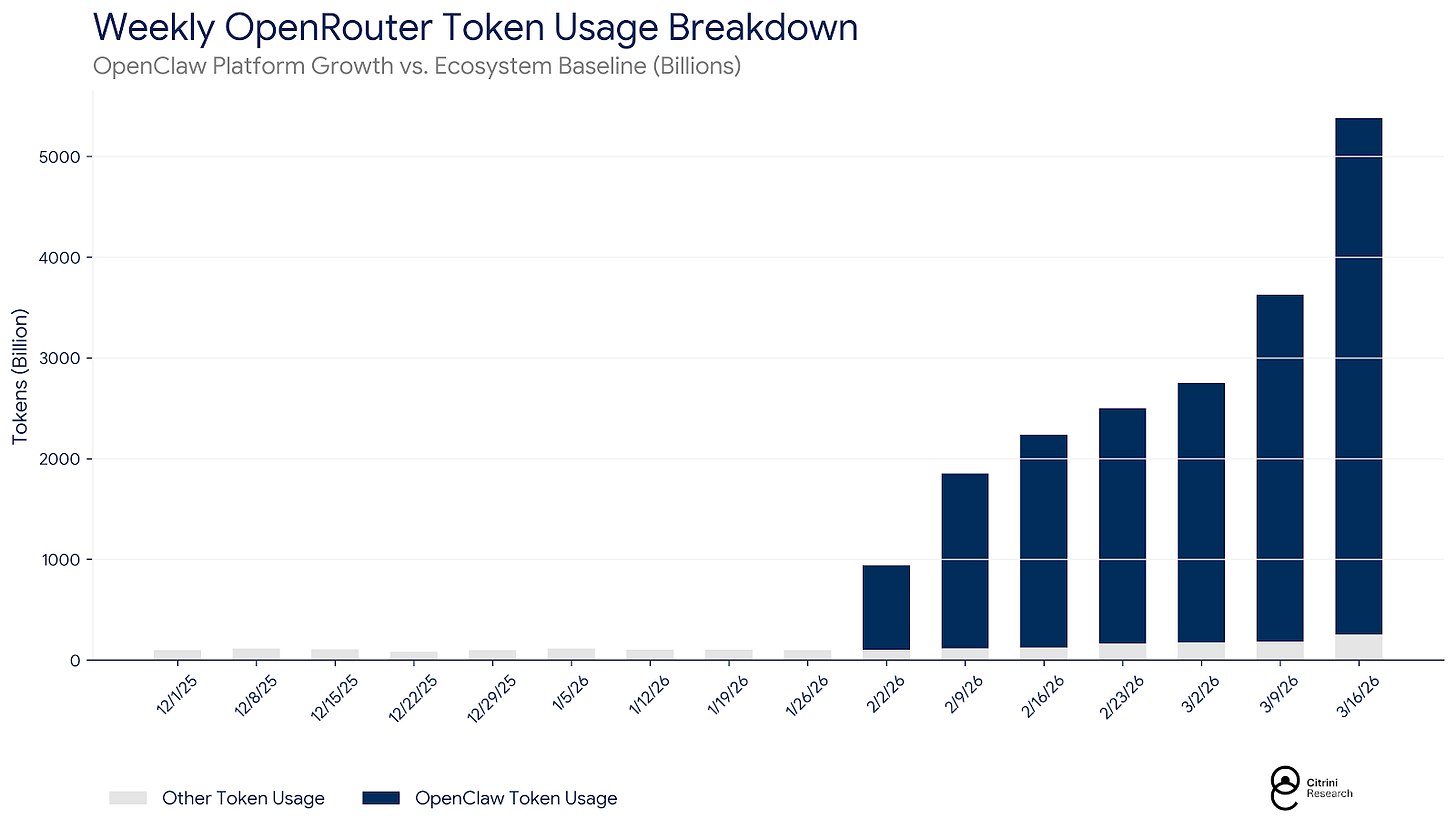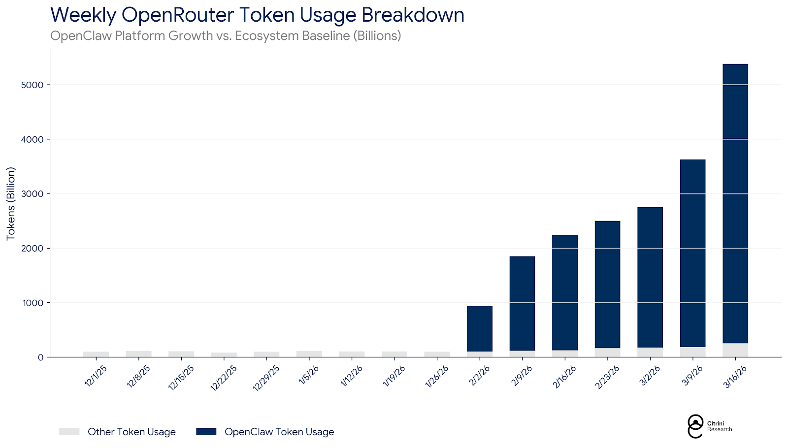 Along with exploding Github references, OpenRouter data shows just how dramatically OpenClaw has accelerated token usage within its product category.