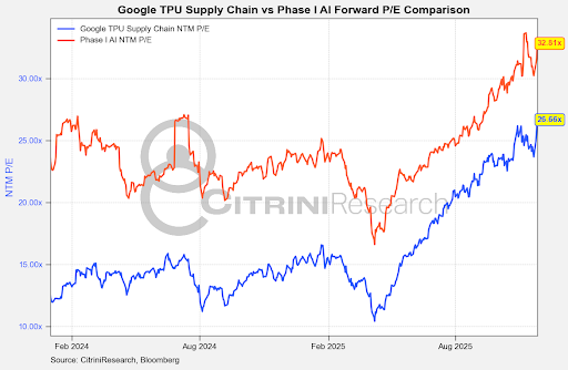 As a basket, these names still trade cheaper on average than our broader Phase 1 AI infrastructure basket that is heavily tilted towards GPUs. Some of this is due to the more cyclical nature of a lot of these suppliers, but if increased TPU demand drives a sustained upcycle in advanced PCBs, substrates, and high-speed networking boards (and their upstream suppliers in copper foil, resins and specialty laminates) we could continue to see a re-rating.