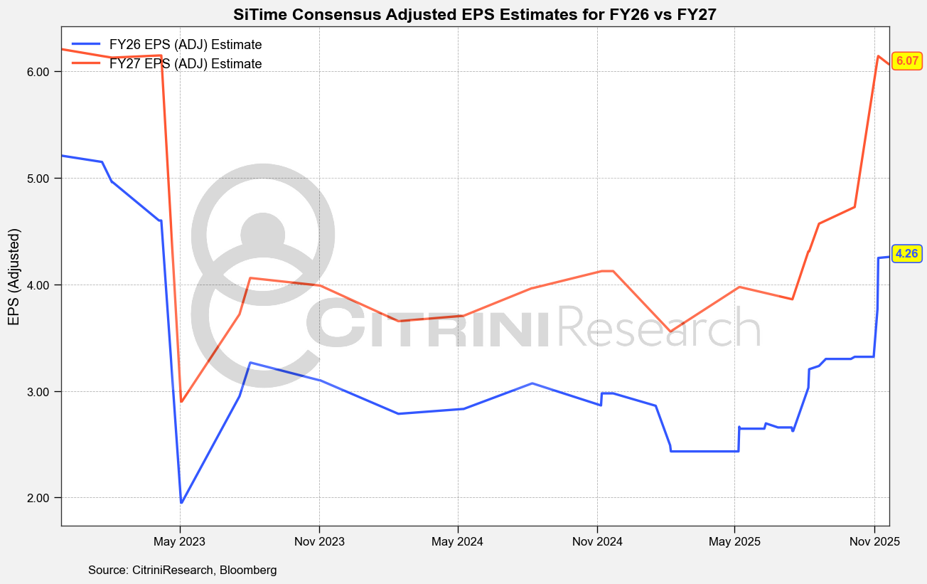 We came across these companies that aren’t directly in the TPU supply chain but could ultimately do quite well in their slipstream – SiTime (SITM US) and Macom (MTSI US).
