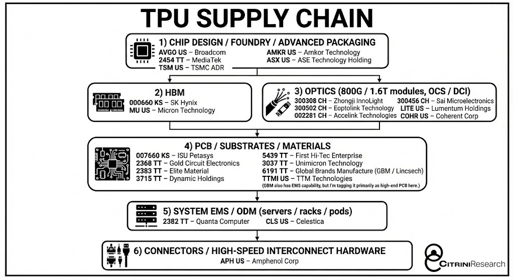 The market is clearly leaning on the #2, but we could find ourselves tempted to dip back into NVDA if sentiment overshoots reality. Regardless – if a TPU scale-up is on the horizon, who else stands to benefit?