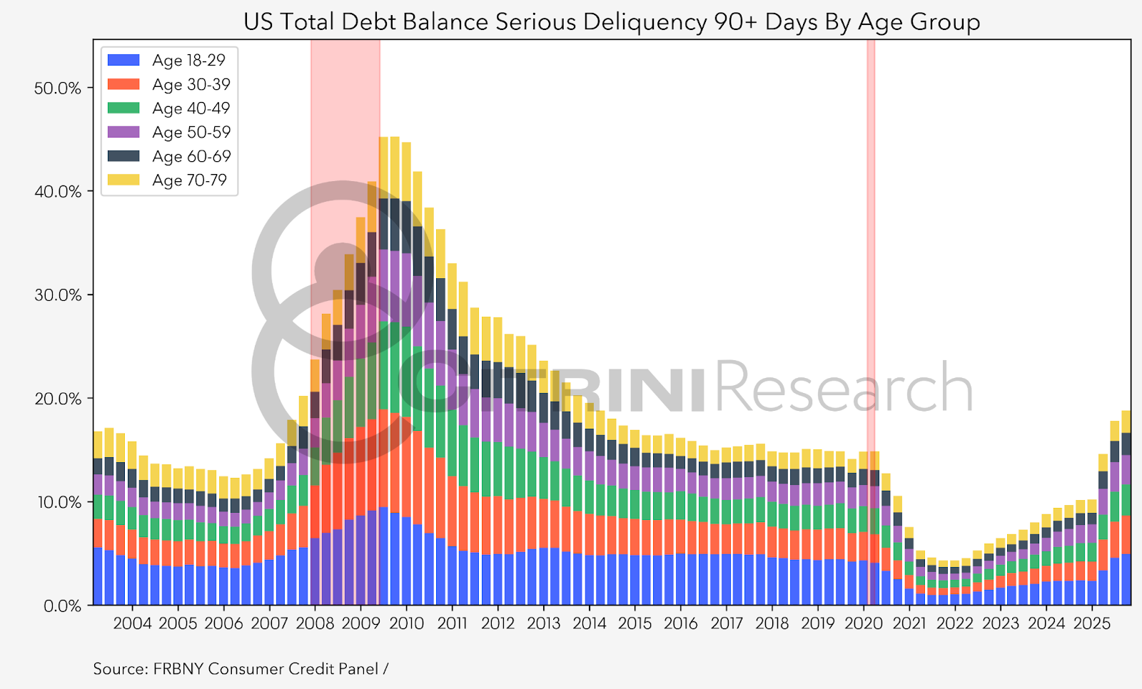 K-Shaped Economy Deepens - Lower-end consumer struggles (negative real wages, credit stress); wealthy cohort’s spending keeps aggregate consumption stable enough to avoid slowdown.