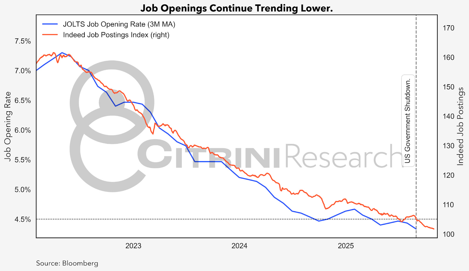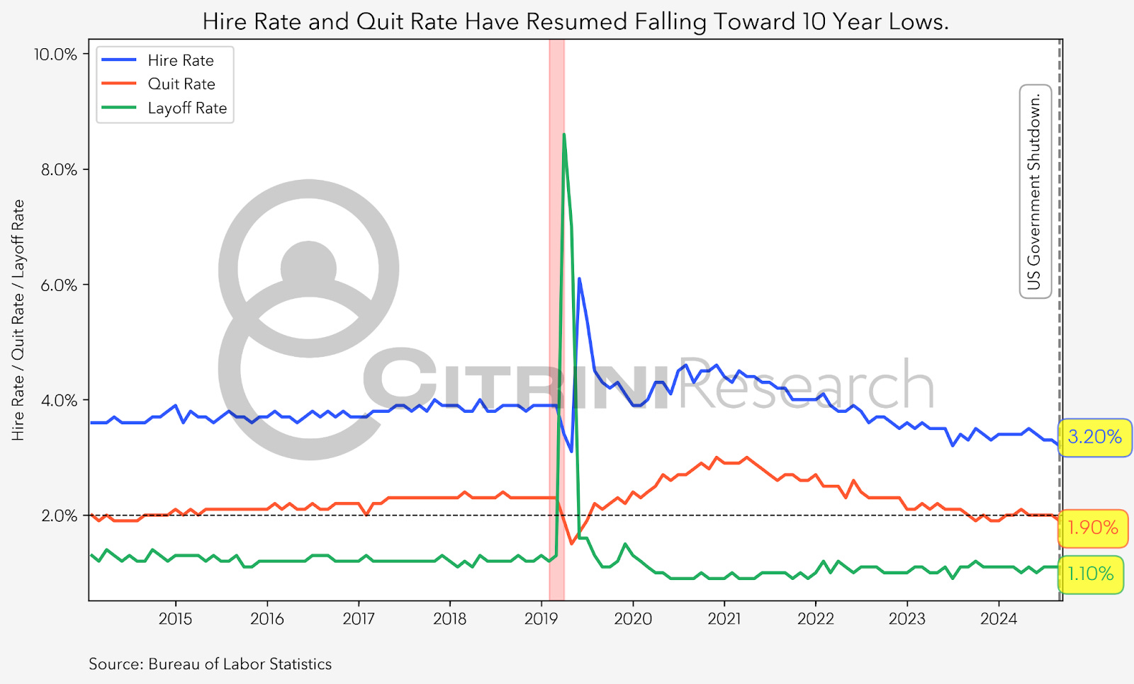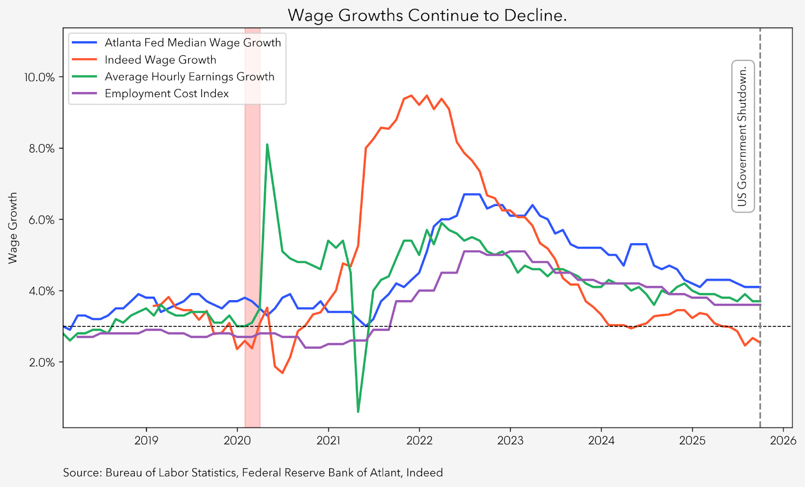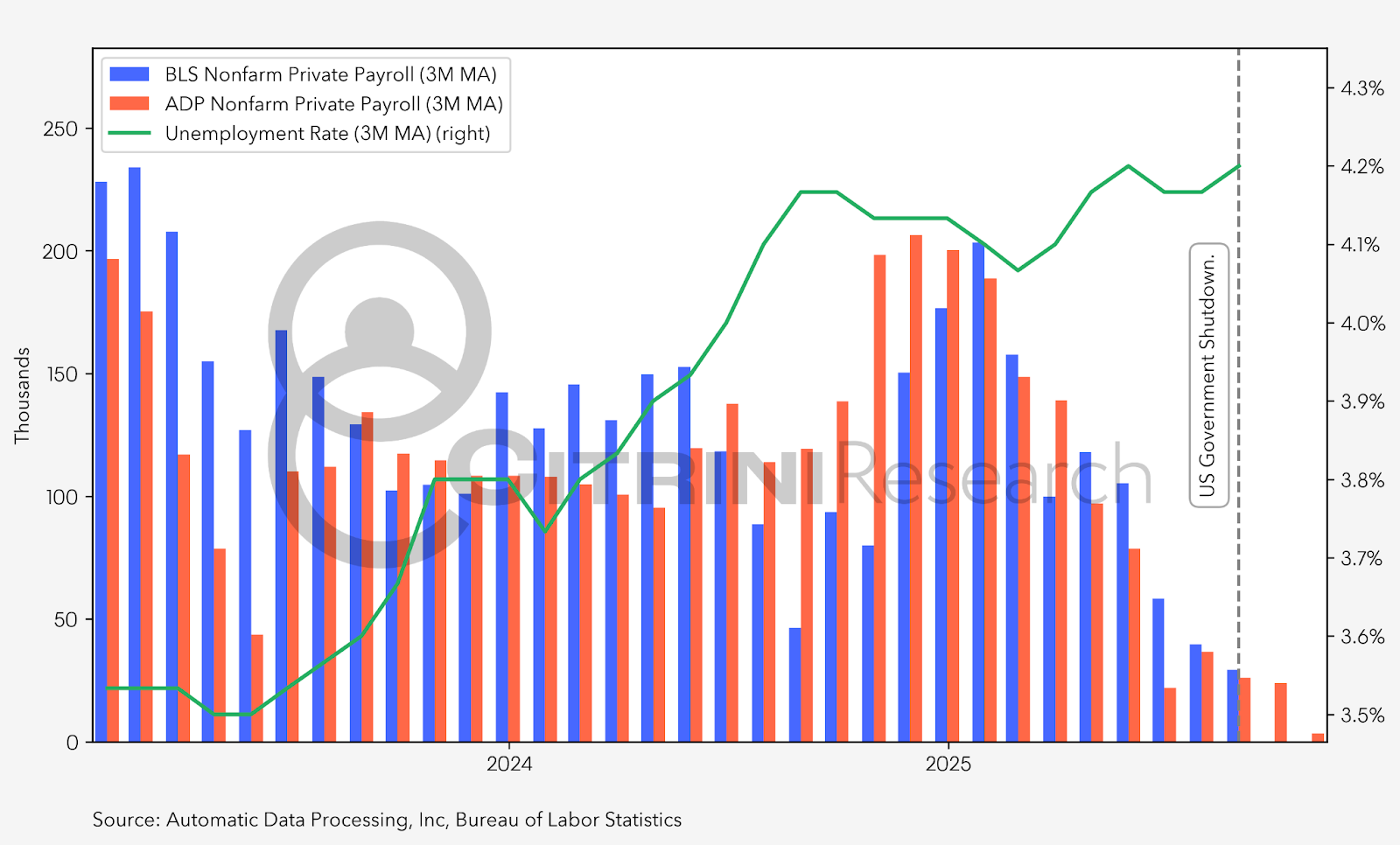 Because the federal government has been in a shutdown since Oct 1, we are missing many macro data points. In our last macro memo, for the US Economy and the Job Market section, we said