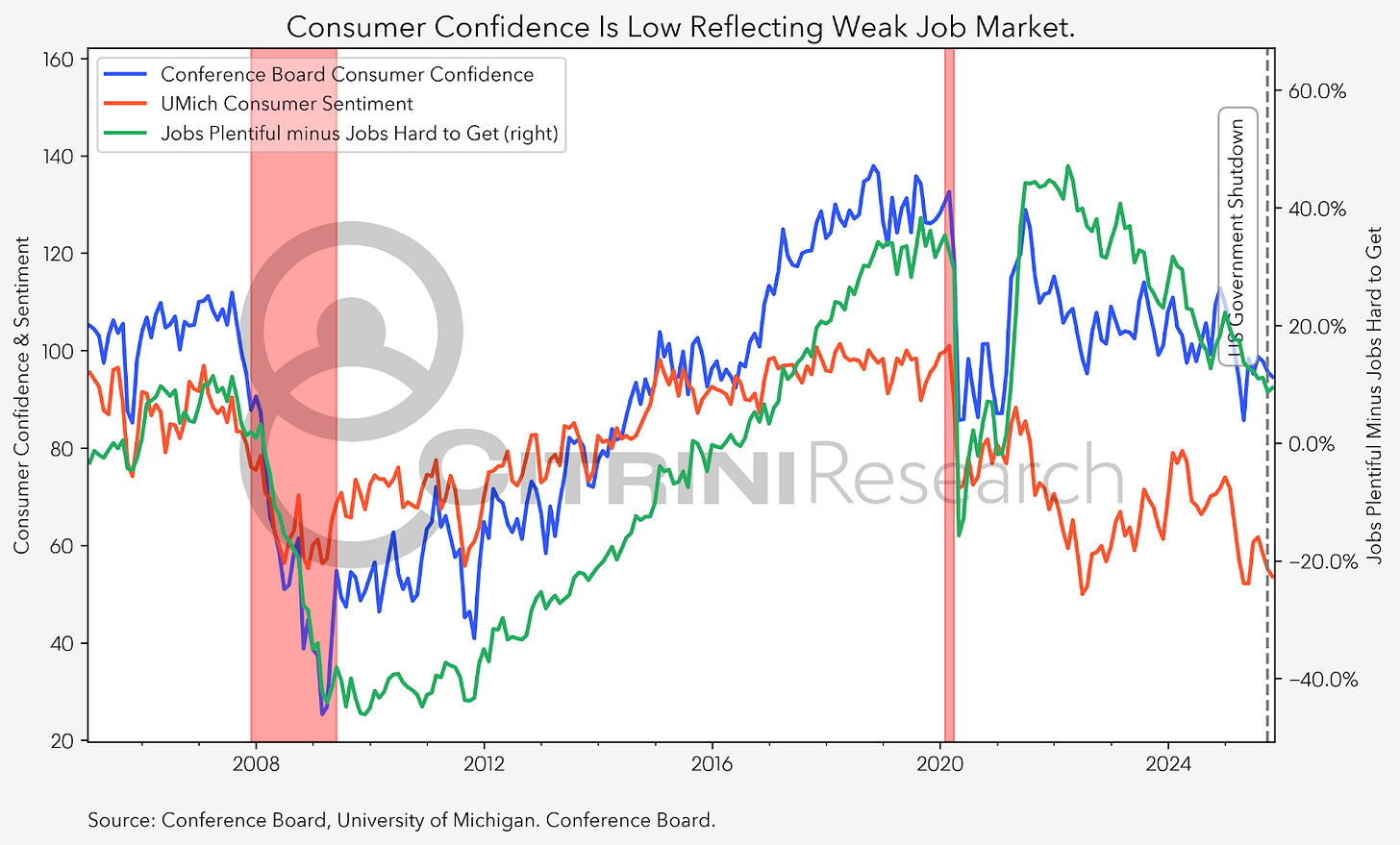 Four weeks later, our opinion hasn’t changed. Almost every element of our earlier assessment still holds and is increasingly validated by private data and corporate earnings. Reports from companies such as McDonald’s, Chipotle, Cava, and Tyson highlight softening demand among lower-income consumers, consistent with the K-shaped dynamics we described. At the same time, we are growing more concerned about the downward momentum emerging across many of the indicators we track.