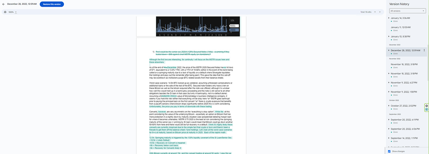 I hosted it on a google doc and have been keeping it updated since. Here, for example, you can see how I originally began contemplating going long the senior secured bonds in June 2022:
