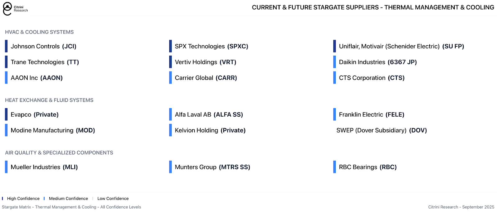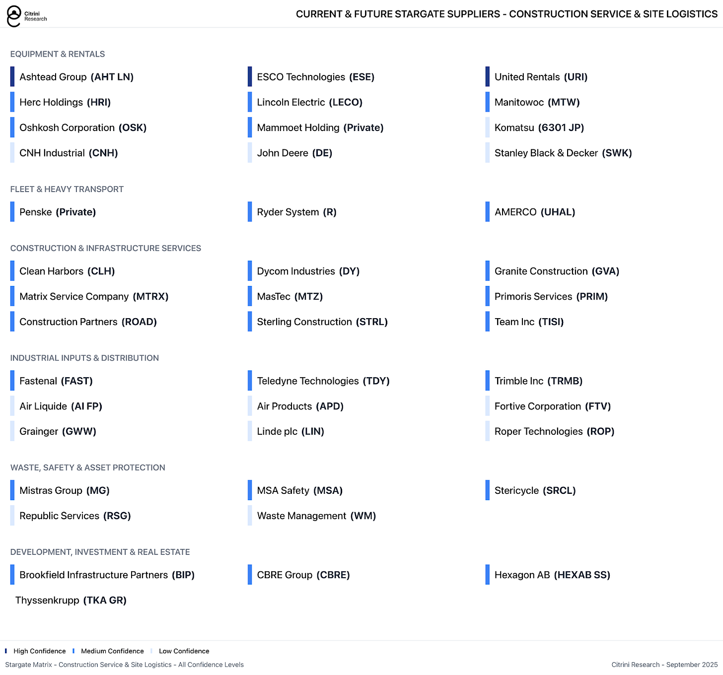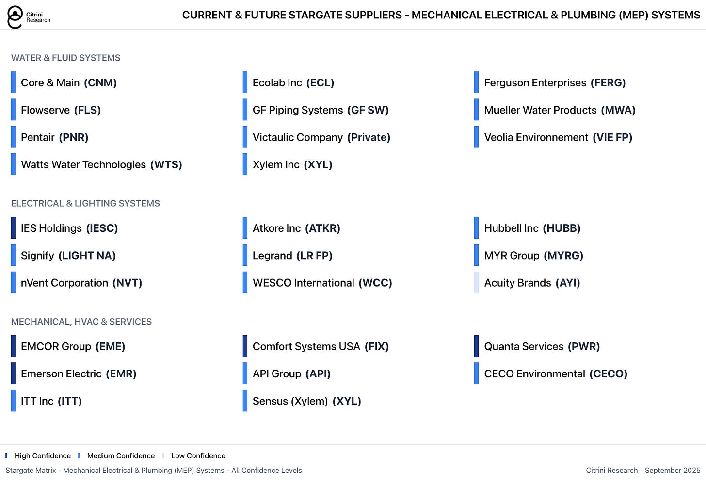 Stargate will likely rely on a range of MEP providers including the ubiquitous large-cap names with broad construction exposure throughout the economy. But even for diversified construction companies, these represent massive assignments and material revenue opportunities, which are only beginning in earnest as these mega-projects begin to break ground.