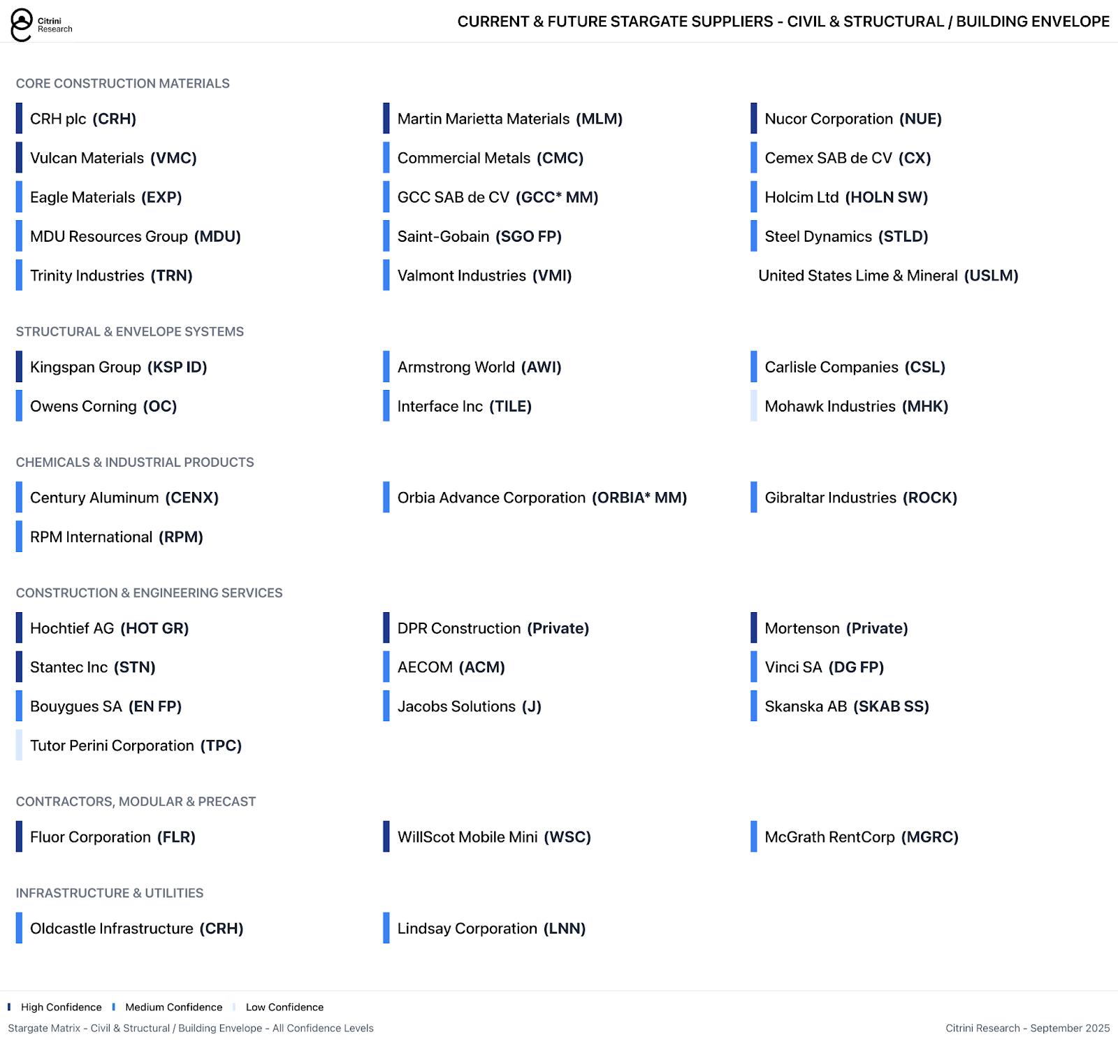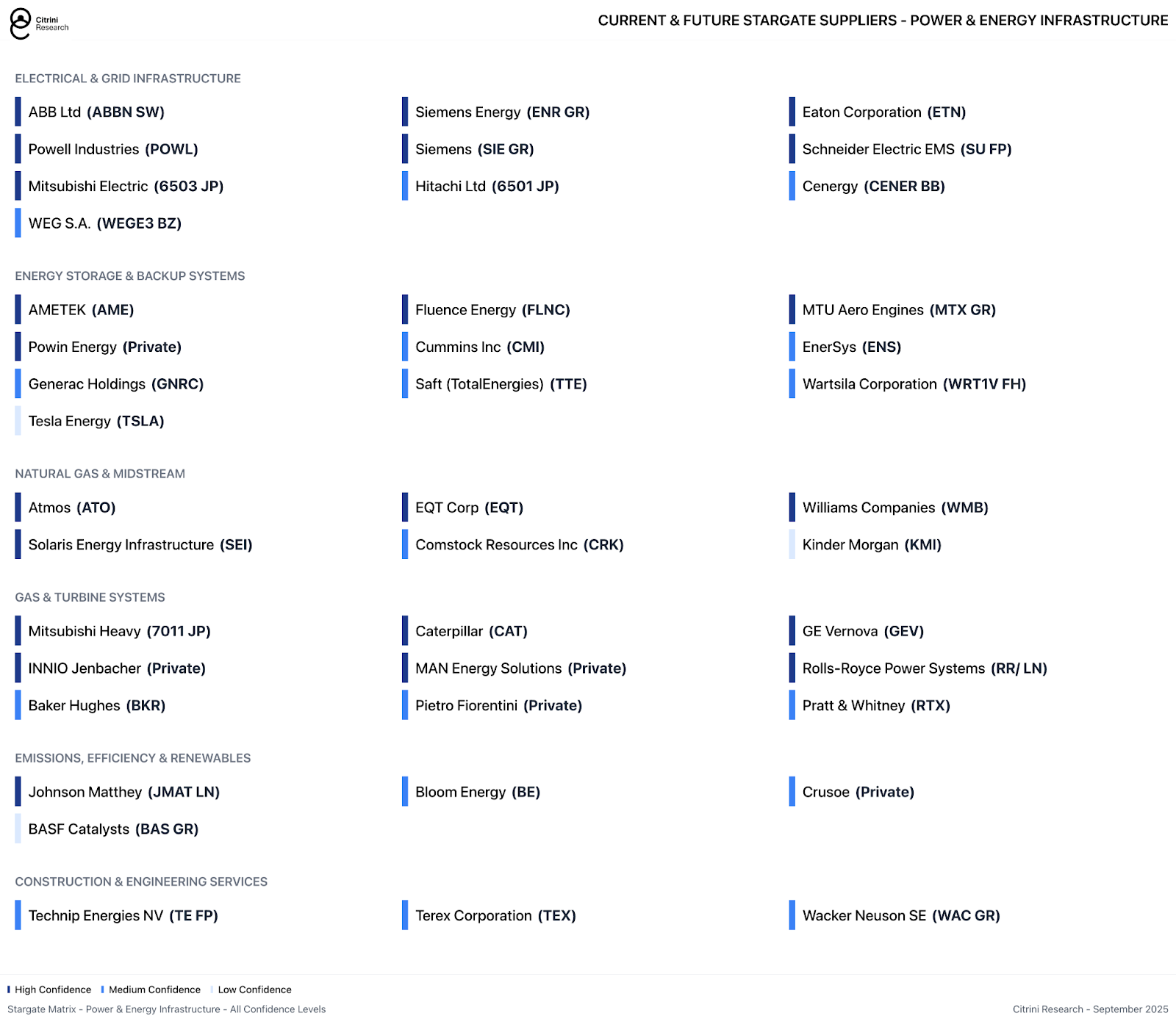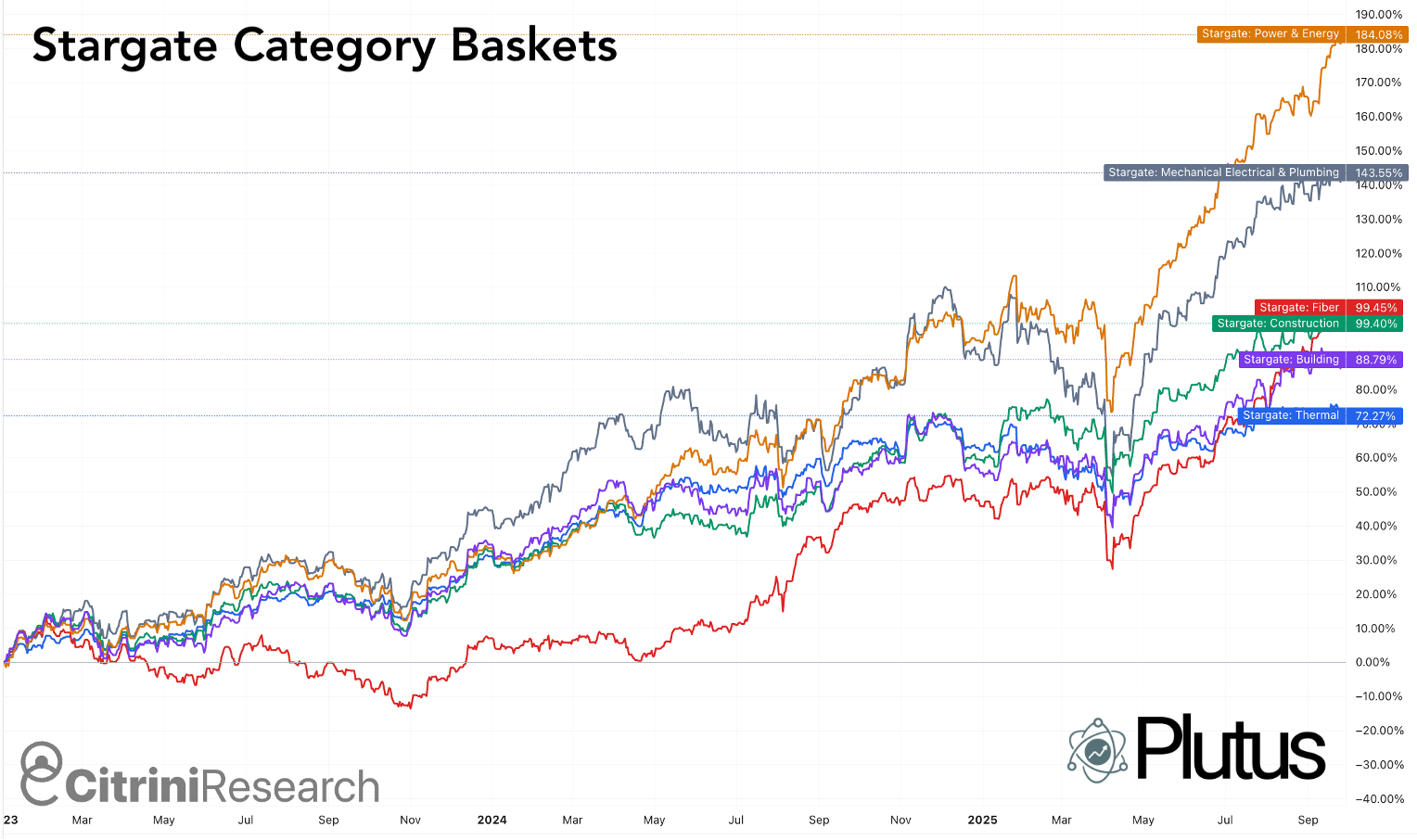 Stargate will likely rely on a range of MEP providers including the ubiquitous large-cap names with broad construction exposure throughout the economy. But even for diversified construction companies, these represent massive assignments and material revenue opportunities, which are only beginning in earnest as these mega-projects begin to break ground.