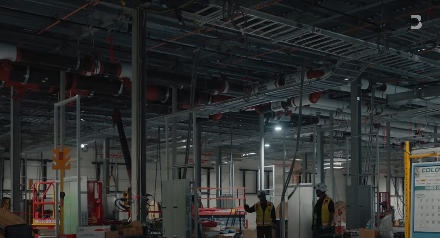 Now we are really getting to the least-exciting but most-necessary part of all this. Before the data flows, the coffee has to. While it can be easy to think of these projects as simply appearing out of thin air, the footage drives home the scale of what’s necessary. Electricians, contractors, plumbers, the architects and EPC companies that tie it all together, heavy equipment, rentals, modular offices, testing/commissioning etc. It’s a bit of a throwback to our thesis on vocational schools like Universal Technical Institute (UTI), we are simply going to need more tradespeople.
