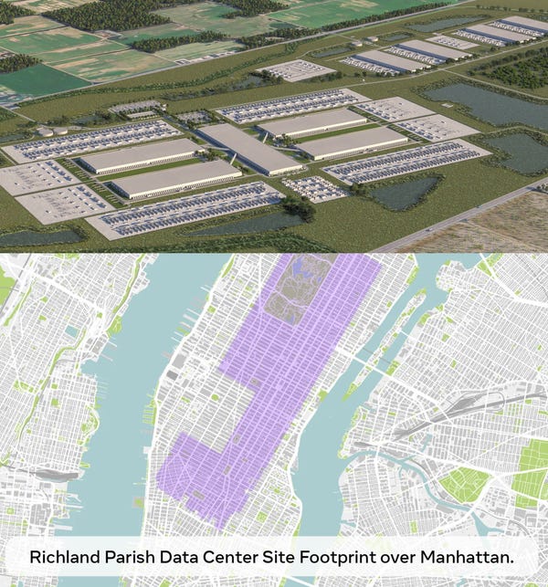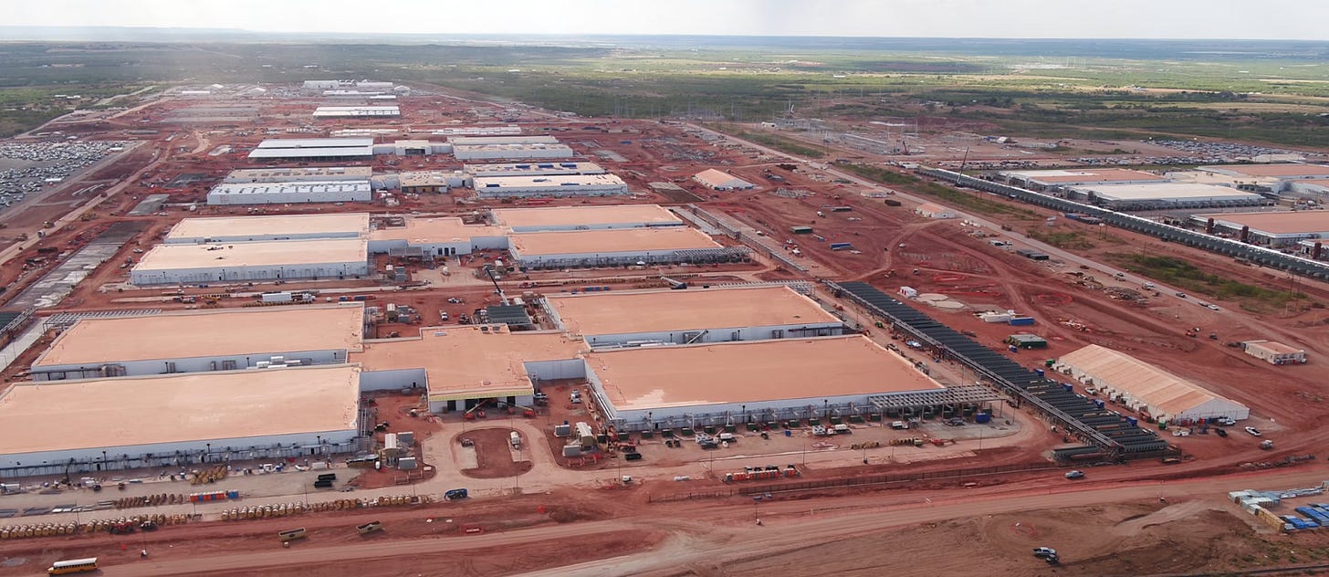 Each is literally a “Ludicrous Building.” And there are eight under construction on this single site. And this is just one of the Stargate data centers, there are many more. xAI’s Colossus 2, Meta’s Louisiana Hyperion, Microsoft’s Fairwater, Quantum Loophole, Nebius’ New Jersey DC, Amazon’s Pennsylvania Project, Google/Anthropic’s Project Rainier - just to name a few.