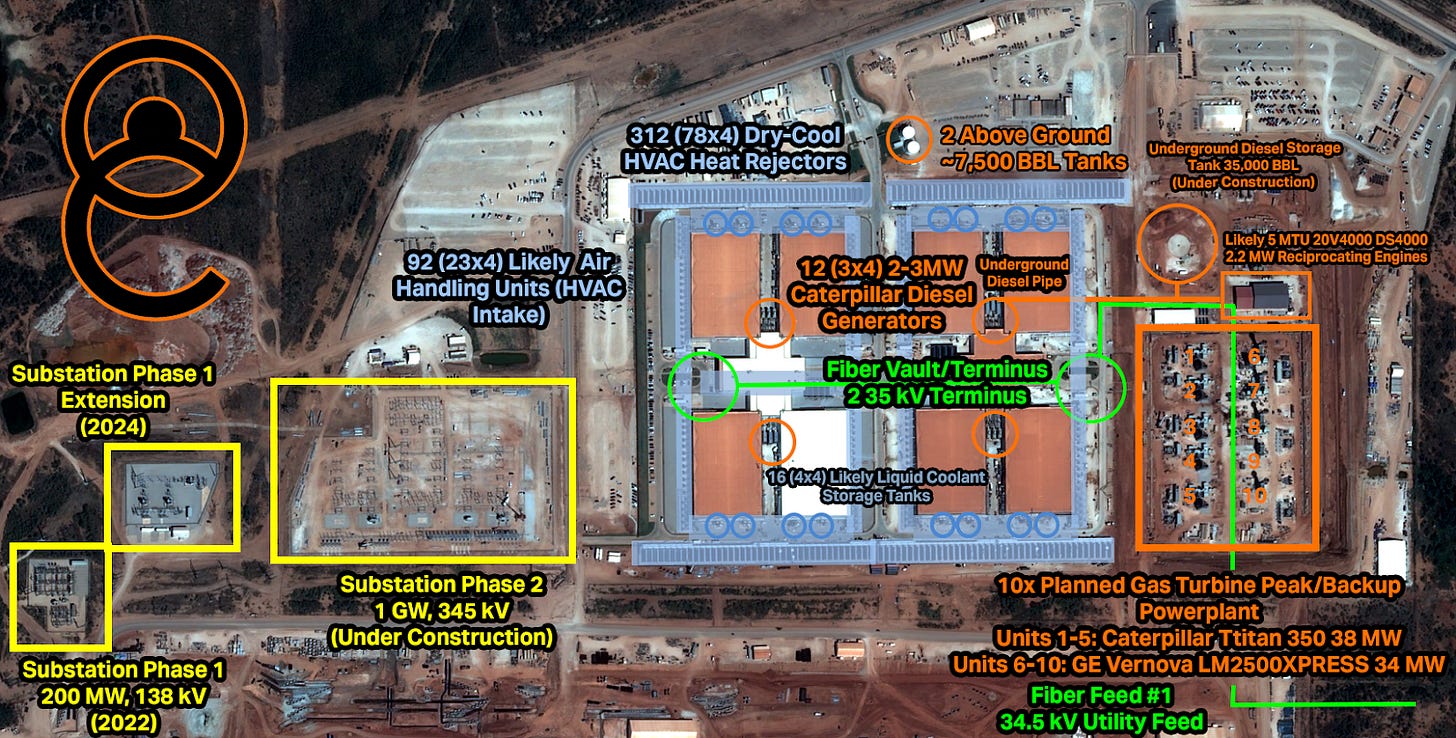 You can see the currently completed data halls (one is currently being used for early training/inference runs by OpenAI), as well as the new construction that will massively expand the current capacity. The scale and speed of the buildout is truly immense, and – for me, at least – awe-inspiring. Don’t let anyone tell you the U.S. doesn’t build things anymore.