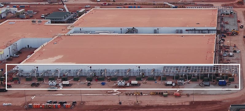 Today, the two dimensional renderings above have already transformed into massive physical structures representing new baseload power demand. We see 10 turbines that have been physically installed, and will be drawing natural gas later this fall.