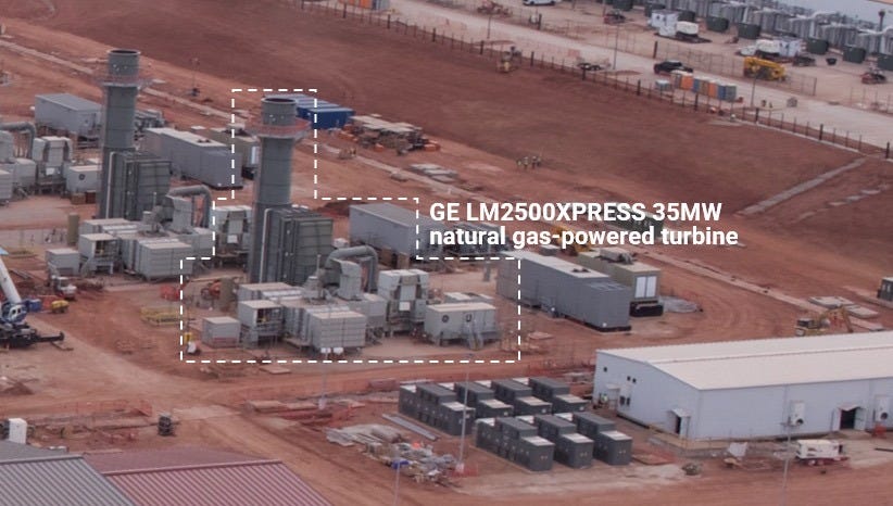 We also notice some simple cycle 35MW turbines from Solar Turbines - a company owned by Caterpillar (CAT). This demonstrates exactly how resilient this aspect of the buildout is: Combined cycle gas turbines have a lead time of 5+ years, simple cycle gas turbines have a lead time of 12-18 months, nuclear is 10+ years away. It’s not hard to imagine why, then, Stargate Abilene is using simple cycle gas turbines from GEV and CAT. Just to be clear, these are significantly less efficient than larger, combined cycle turbines. But efficiency doesn’t matter when you are taking what you can get.