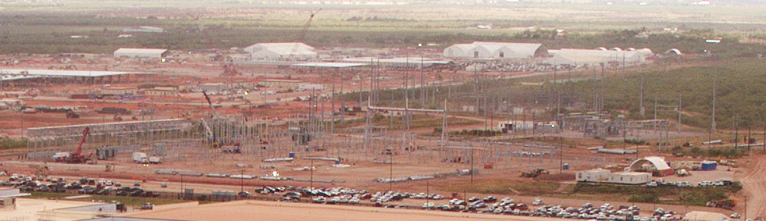 We can also see the transmission lines running north-south along the eastern perimeter and a new, expanded substation being constructed: