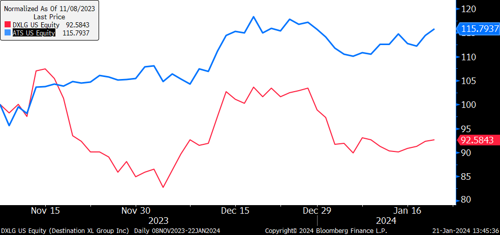 The addition of ATS upon the exit of DXLG was another good decision, with ATS up nearly 15.8% and DXLG down 7.42% since.