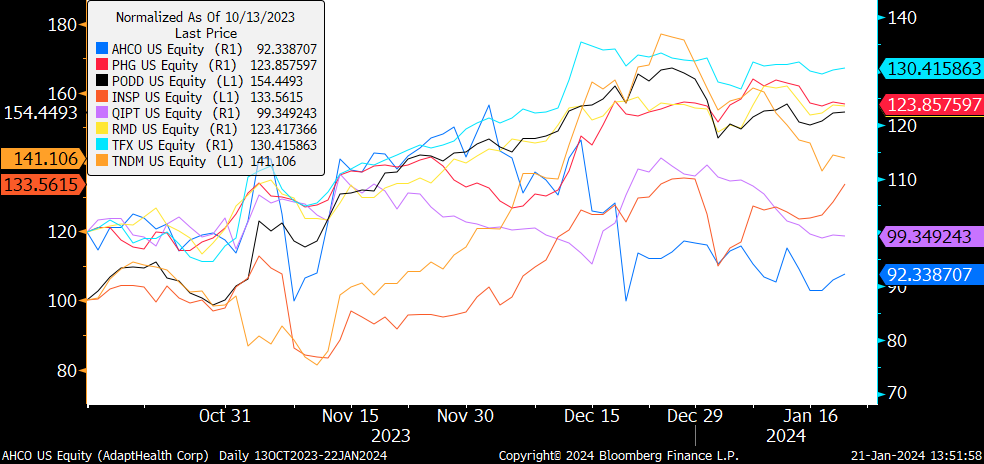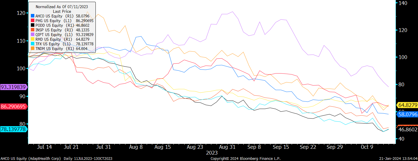 First, on 10/13/2023, we made adjustments to the GLP-1 basket that reduced short exposure by half to all the Med Tech components in the basket. This reduced AHCO, PHG, PODD, INSP, QIPT, RMD, TFX & TNDM and increased the basket to a net long exposure of about +30%, which I described here: