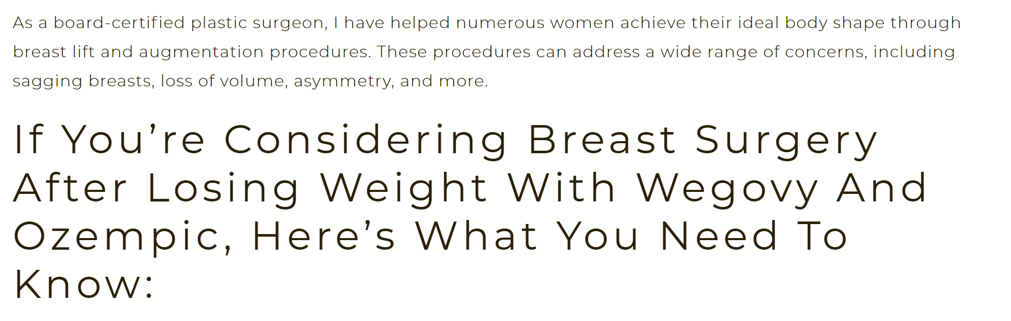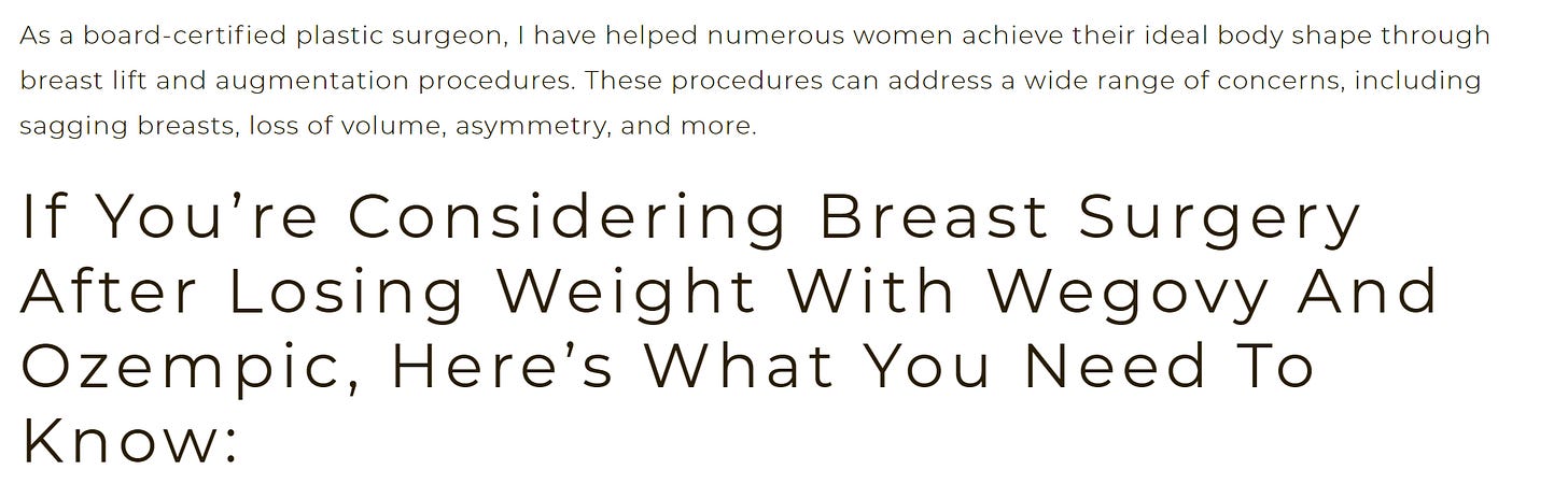 Plastic surgery volumes have already been impacted positively by weight loss due to GLP-1s. The results from a quick google search show that plastic surgeons are already marketing to this segment: