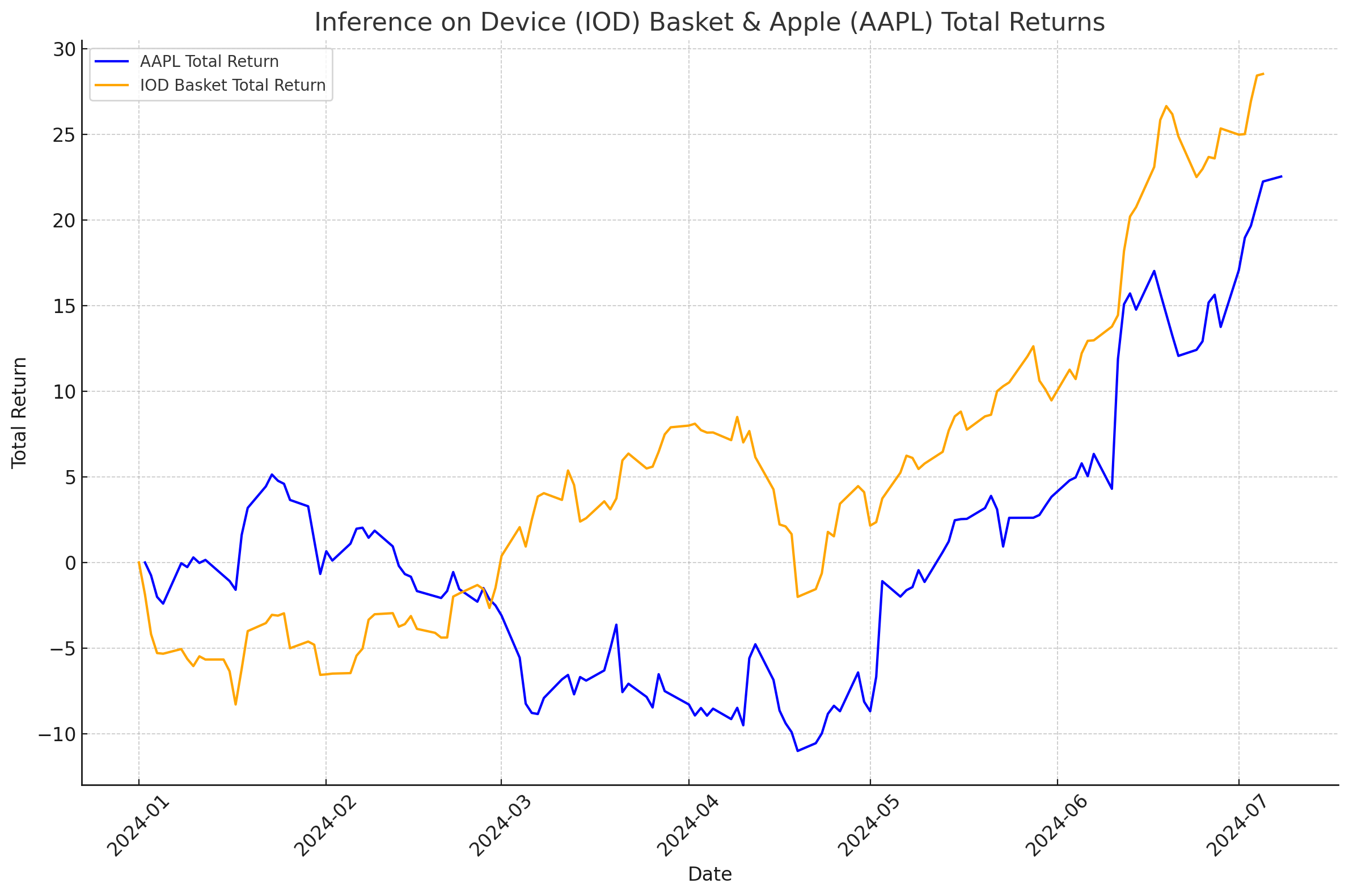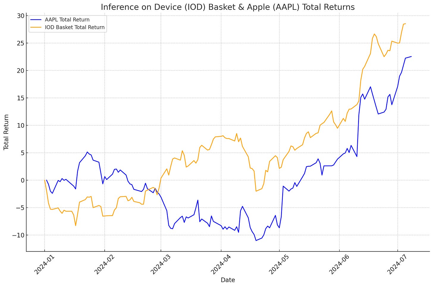 Apple is up more than 19% in the 5 weeks since we wrote about that swap, while Google is only up ~7.5%. But the reaction of Apple to their WWDC presentation, specifically to the Edge AI aspect, has had me thinking about what Phase 2 looks like at the edge and on mobile devices since.